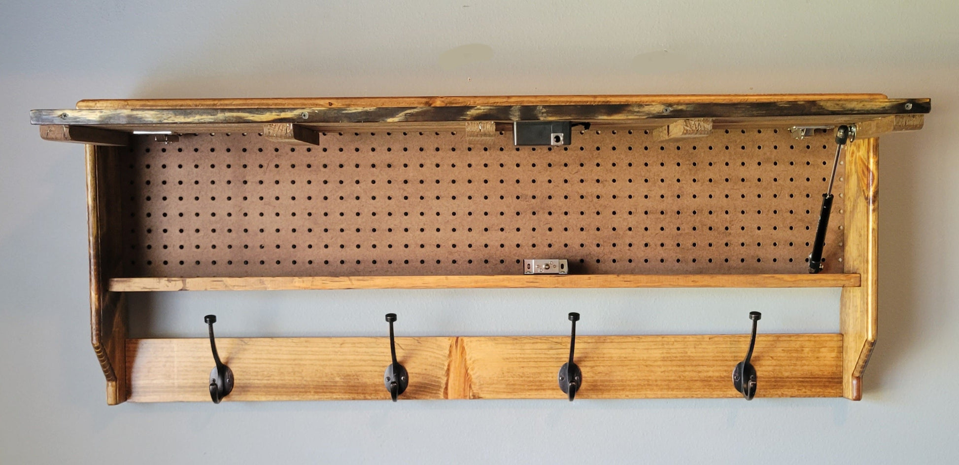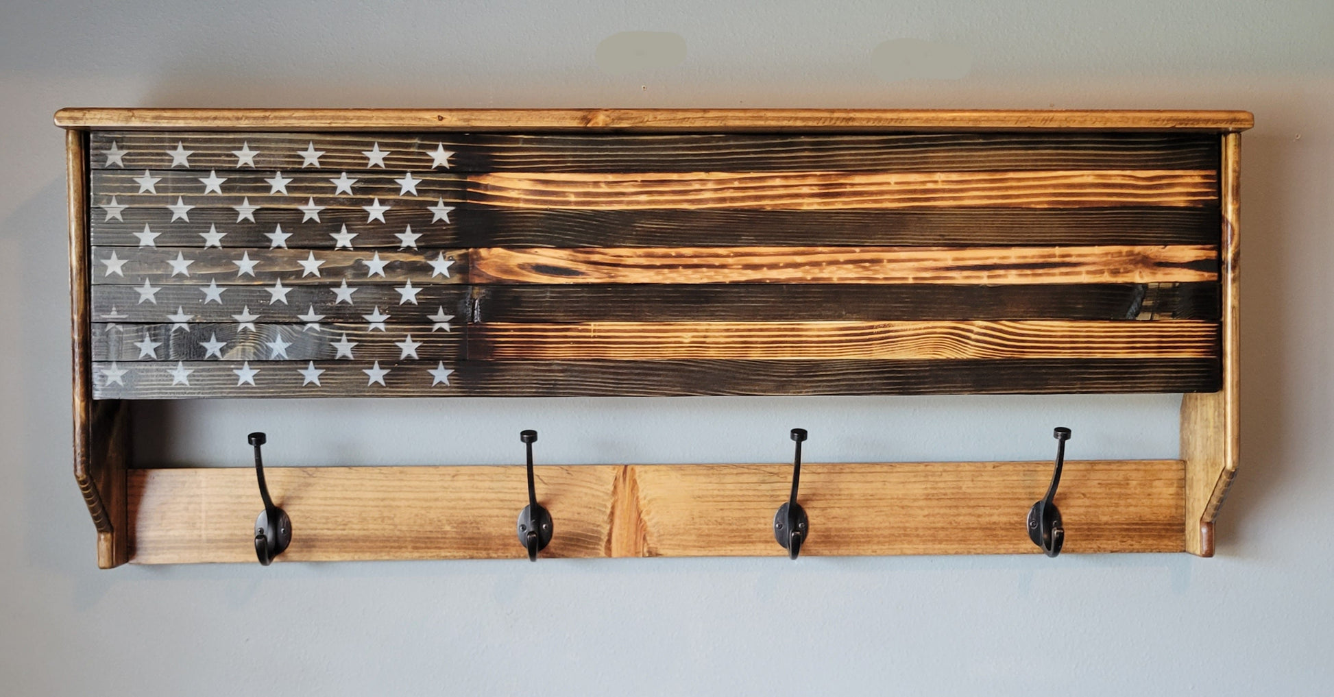 Design: 4 Coat Hangers (included) and a Shelf on Top (knick-knacks not included)
