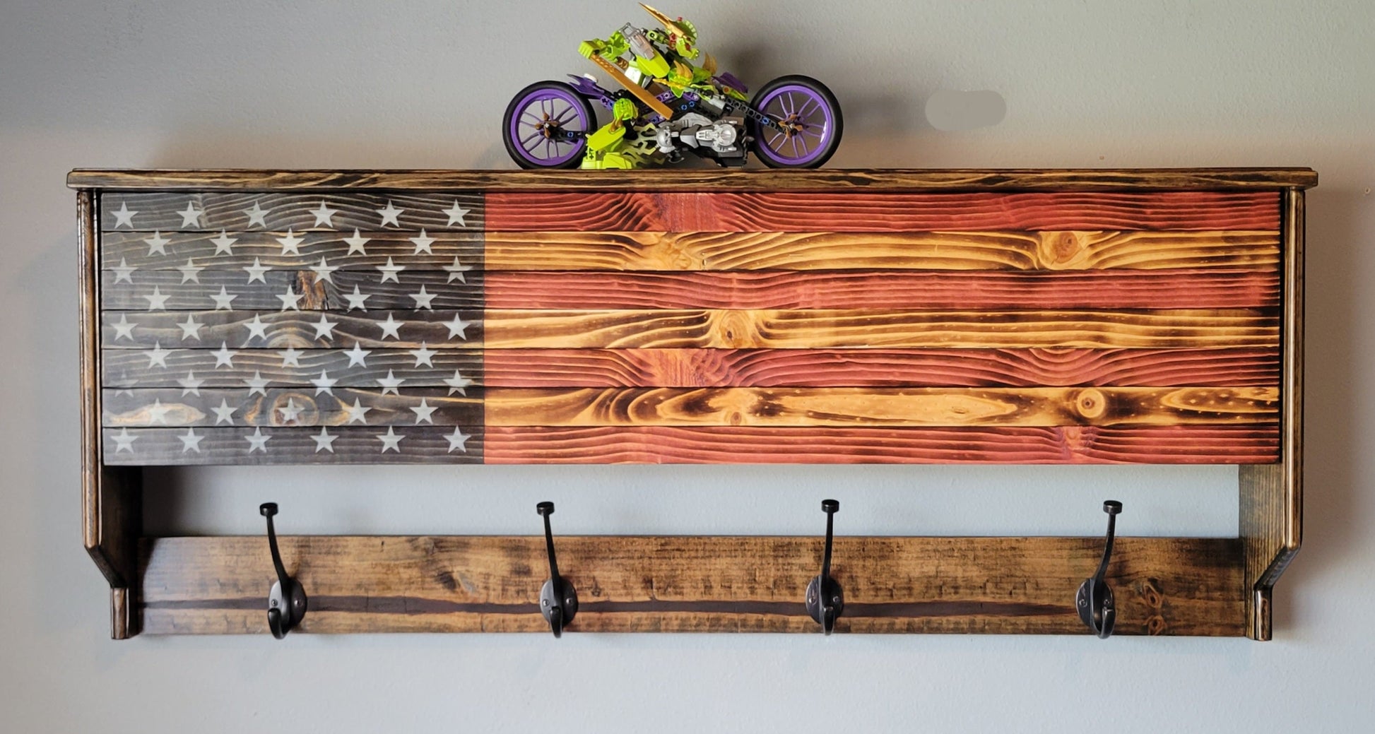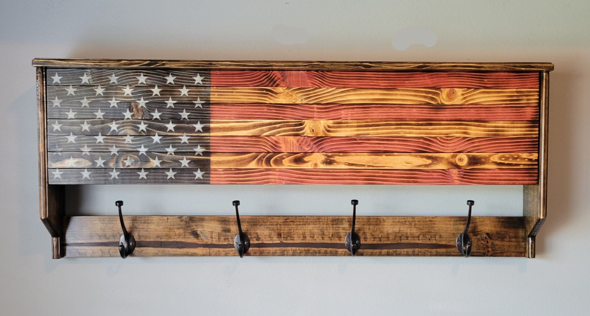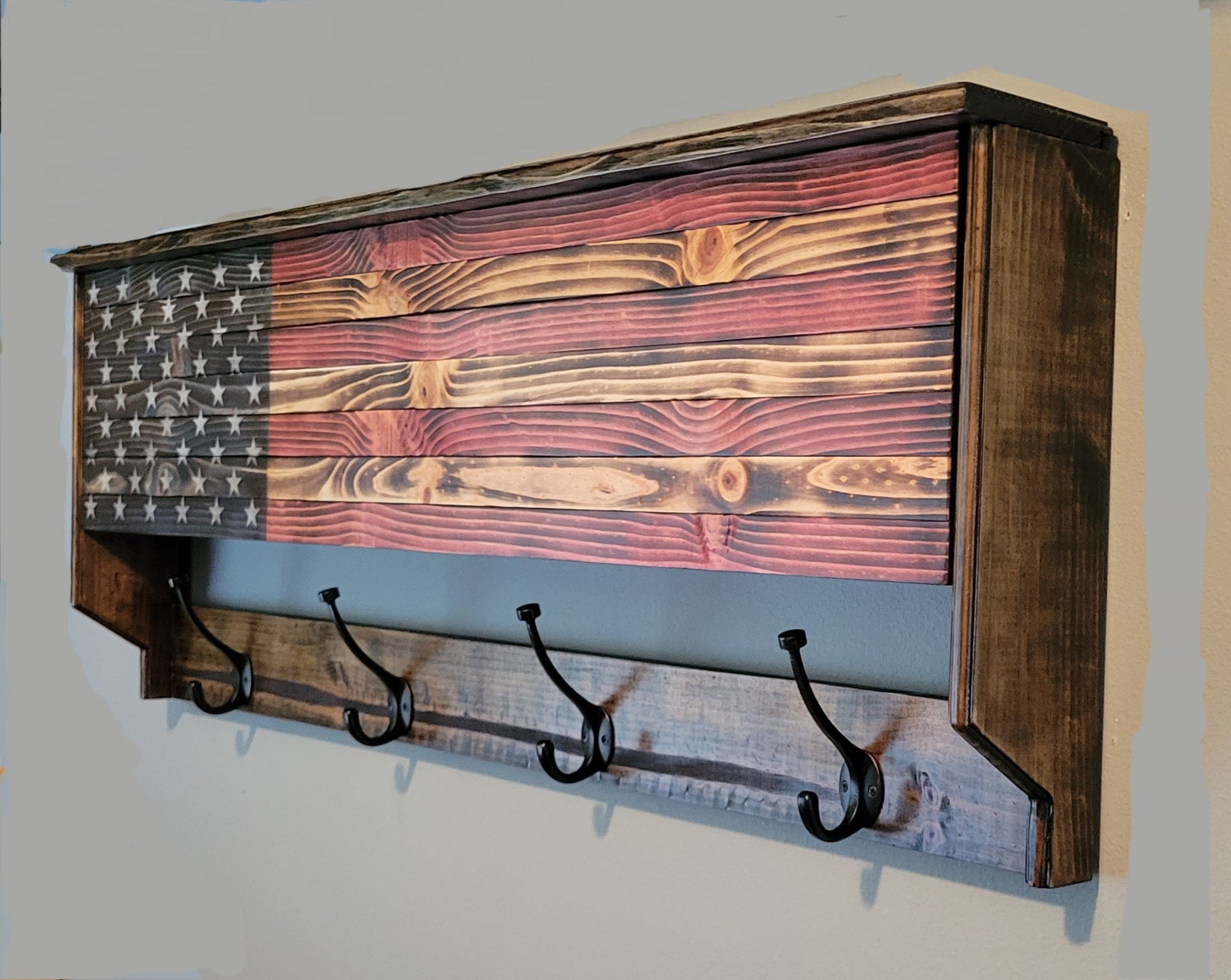 Coat Rack Concealed Cabinet Wooden American Flag