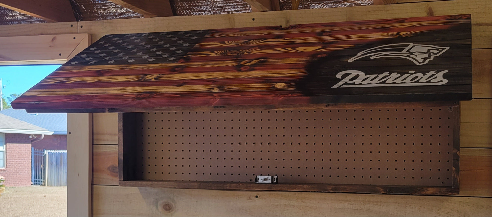 Handmade concealed cabinet wooden flag.