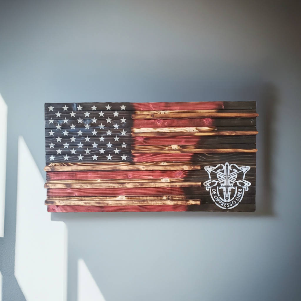 "DE OPPRESSO LIBER" Wooden American Coin Holder Flag