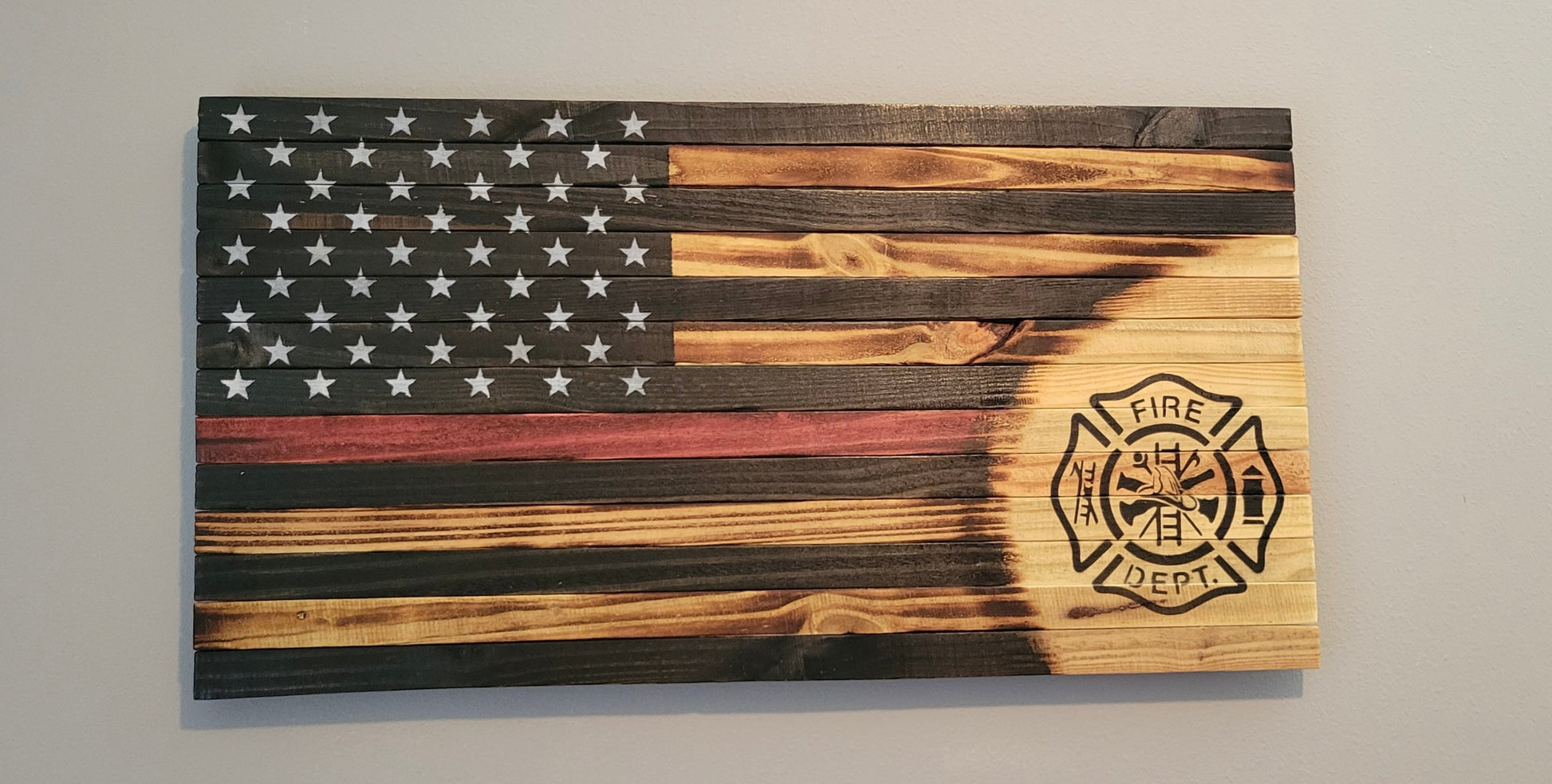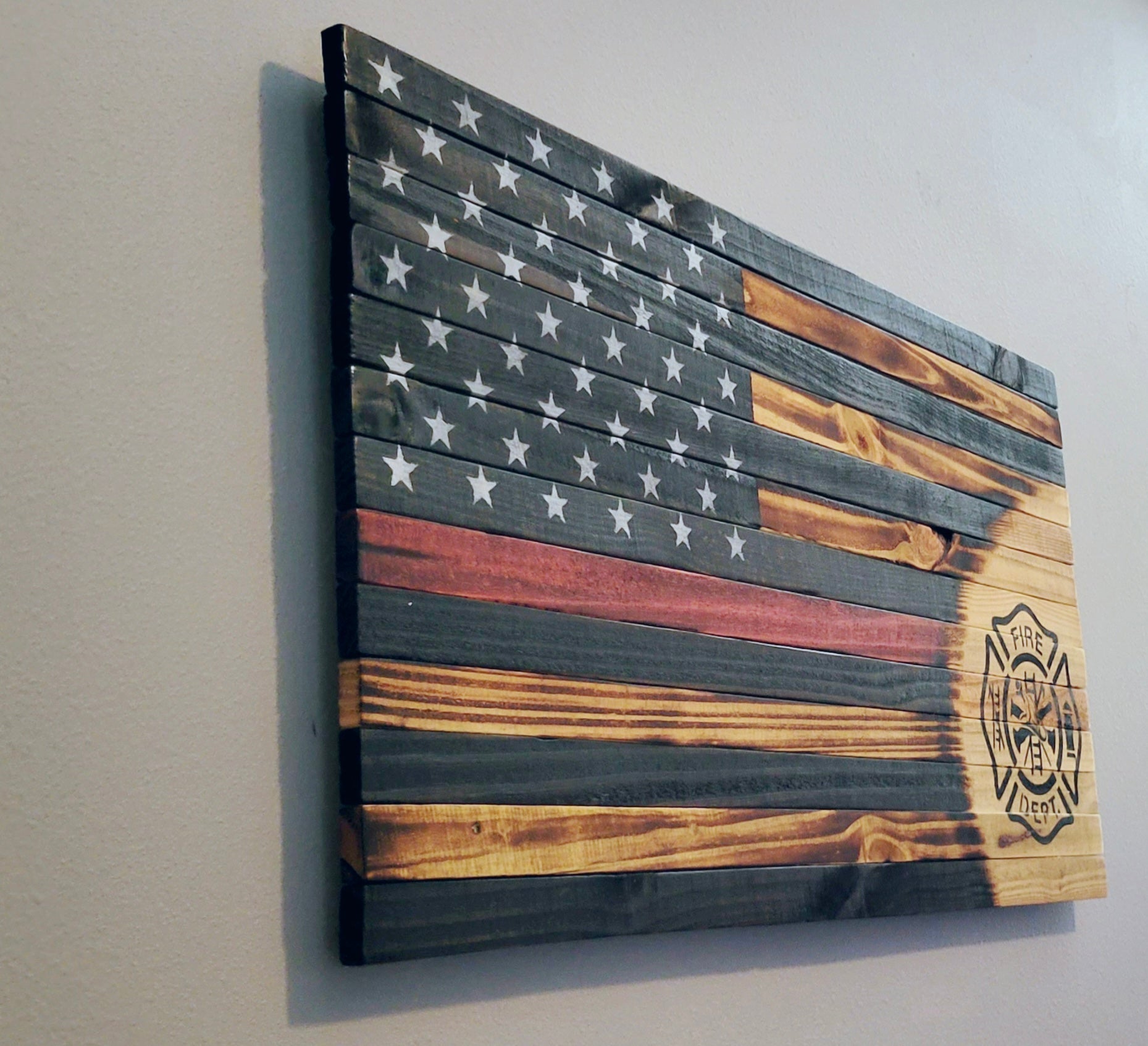 Firefighter Wooden American Flag with Red Line
