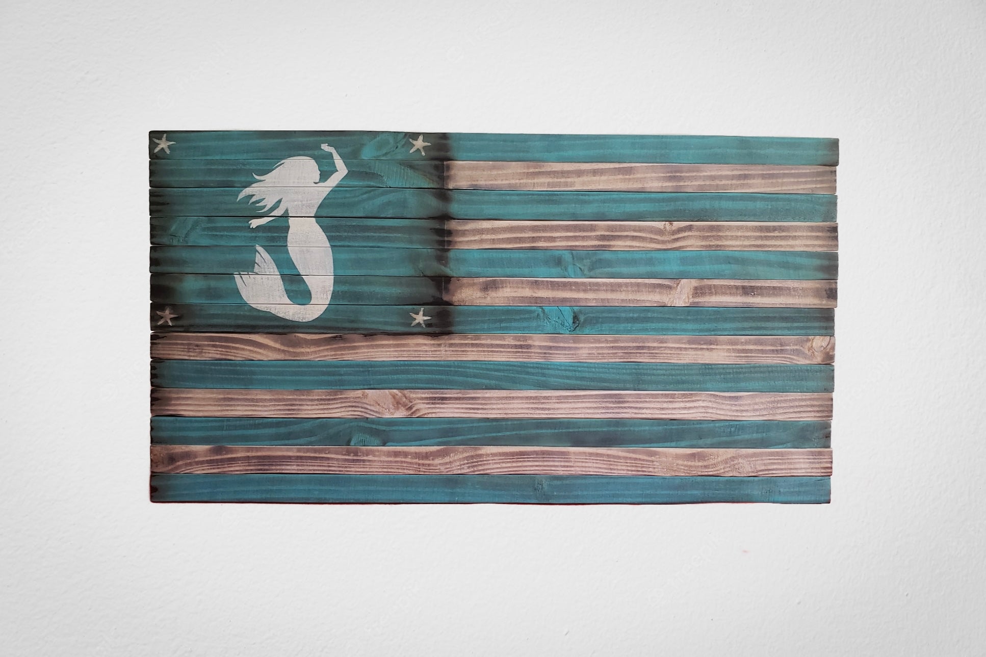 Design: Mermaid and Starfish Design in White with Light Blue Background in replace of stars.