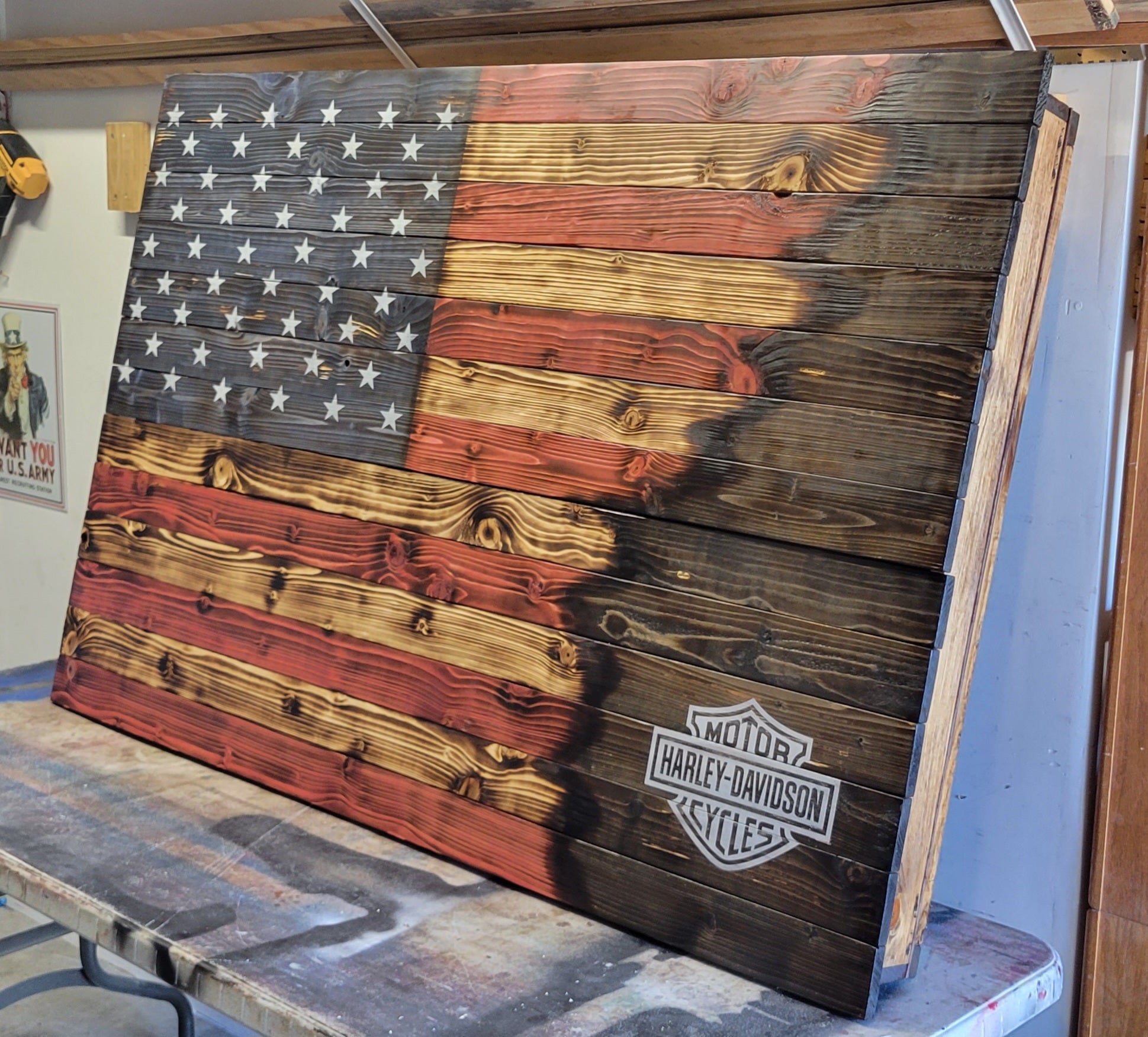 XXLarge Concealed Cabinet 2 Door Wooden Harley Davidson American Flag